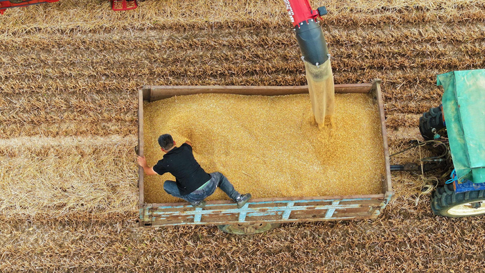5月16日,在河南省南阳市社旗县郝寨镇,收割机在收割小麦。