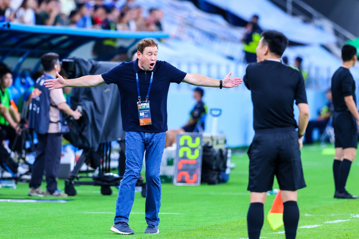 6月14日,上海申花队主教练斯卢茨基(左)在场边指挥。