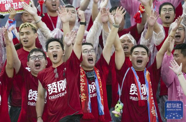 ↑ 球迷在场边为常州队加油。
