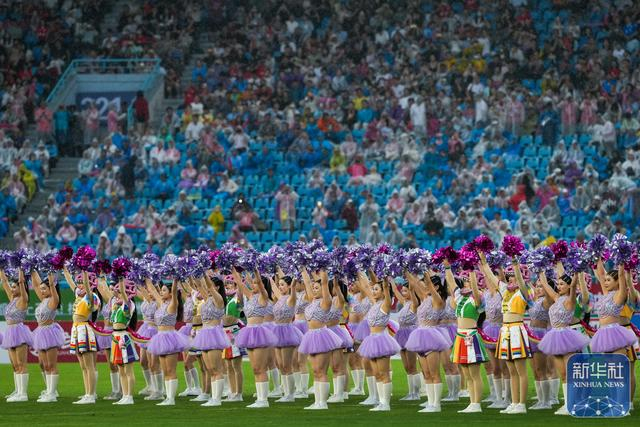 ↑ 拉拉队队员进行赛前表演。