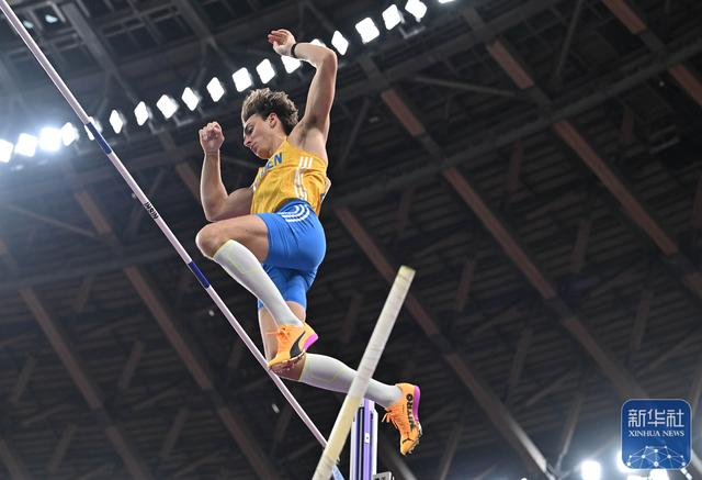 ↑杜普兰蒂斯在决赛中试跳。新华社记者 江汉 摄