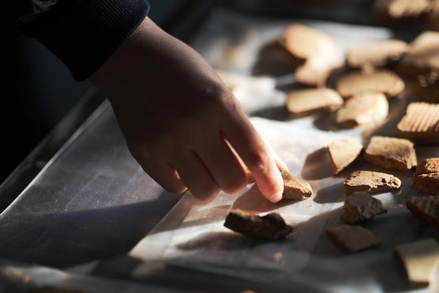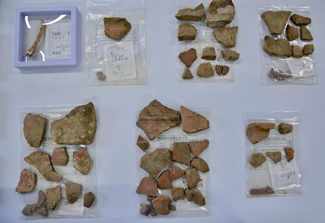 9月28日在位于辽宁朝阳的牛河梁工作站内拍摄的陶片和骨骸残件。新华社记者 吴青昊 摄