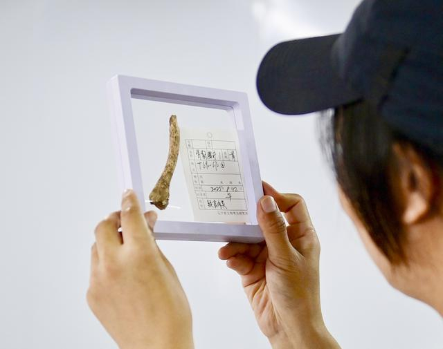 9月28日,于怀石在位于辽宁朝阳的牛河梁工作站内查看骨骸残件。新华社记者 吴青昊 摄
