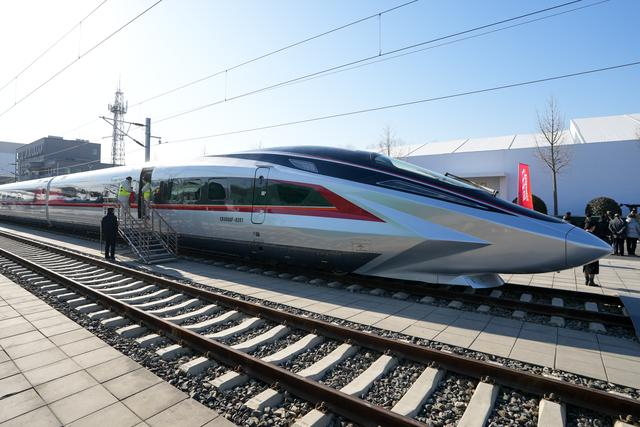 2024年12月29日,运营时速400公里的CR450动车组样车在北京发布。新华社记者 鞠焕宗 摄