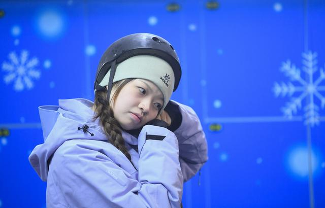 一名女子在绍兴乔波冰雪世界戴头盔准备进入雪场(12月24日摄)。新华社记者 翁忻旸 摄