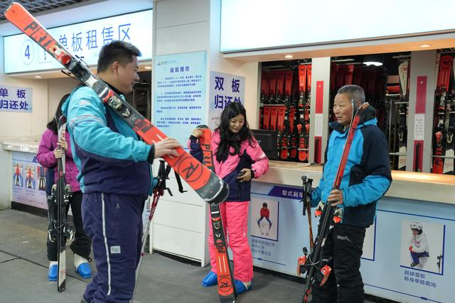 人们在绍兴乔波冰雪世界租借雪具准备进入雪场(12月24日摄)。新华社记者 翁忻旸 摄