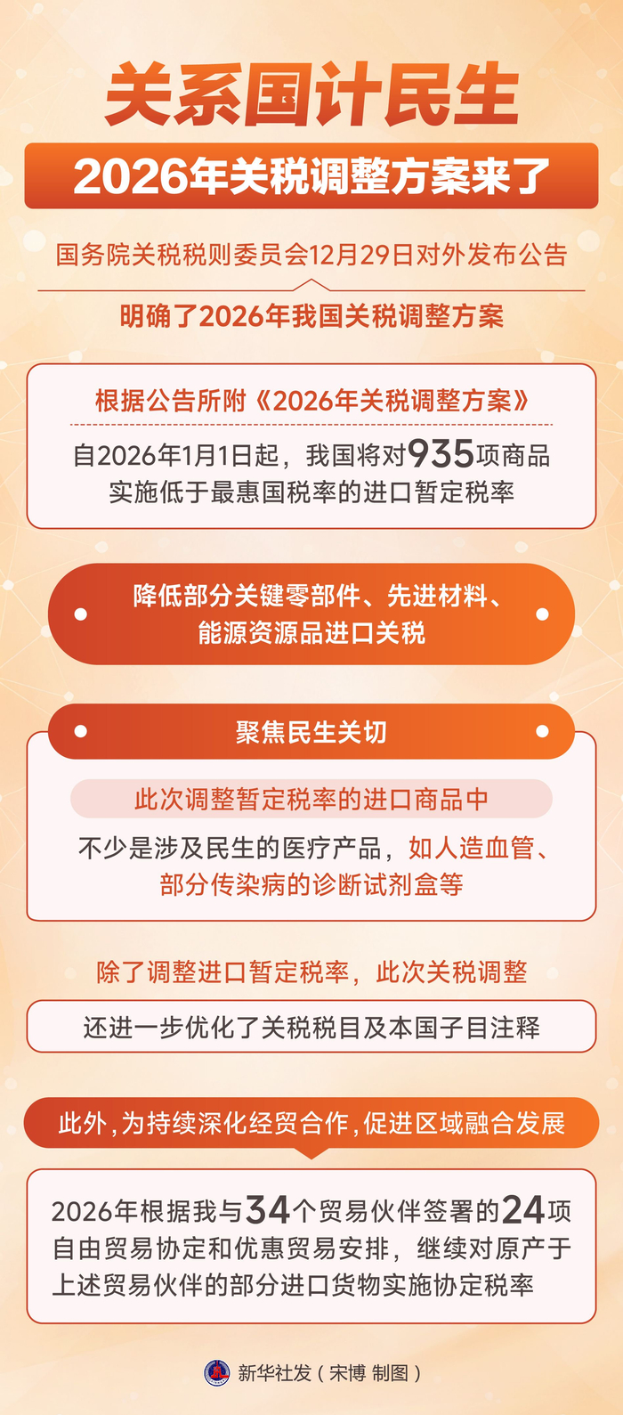 关税是国家宏观调控的重要手段。国务院关税税则委员会12月29日对外发布公告,明确了2026年我国关税调整方案。