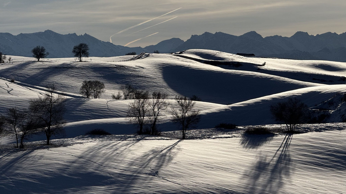 这是12月28日拍摄的江布拉克景区。新华社记者 曹奕博 摄如今的新疆,正以更丰富的景观、更地道的民俗、更松弛的度假生活留住人心,将冰雪“流量”转化为文旅“留量”。