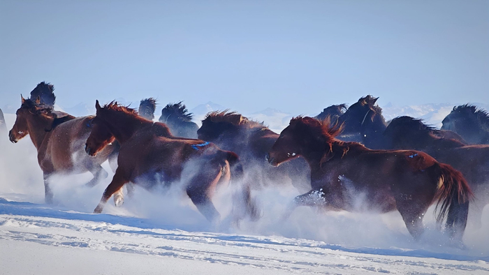 在伊犁州昭苏县,这座因盛产伊犁天马而闻名的小城,马文化正成为拉动当地冰雪旅游的新引擎。昭苏县委宣传部工作人员特布吉尔格力介绍,当地深耕马产业发展,打造马文化体验项目,开发全季全域旅游产品,“夏观天马浴河、冬赏天马踏雪”已成为昭苏旅游的鲜明标识。在昭苏湿地公园亲眼见到期待已久的“天马踏雪”后,来自香港的游客吕先生激动地说:“万马奔腾、雪花飞溅的场景难得一见,太震撼了!”