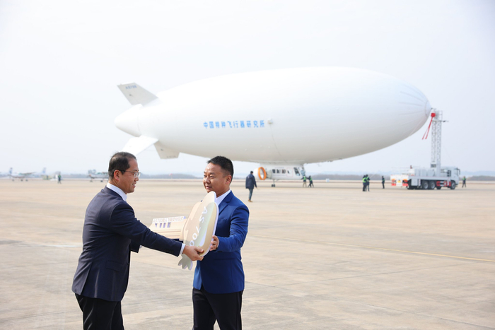 同日,在湖北省荆门市,航空工业特种飞行器研究所向太仓文旅集团移交“启航钥匙”,完成AS700载人飞艇批产首艇交付。