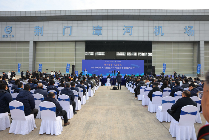 图为12月30日,湖北荆门市,国产AS700载人飞艇获颁生产许可证暨批产交付现场。(受访单位供图)2024年以来,AS700载人飞艇团队完成了超过187架次、累计602小时的安全试飞。“在此过程中,我们建立起载人飞艇研发设计、生产制造、试验试飞、服务保障等全链条体系,培育了一支专业化队伍。”航空工业特种飞行器研究所所长许明轩说。