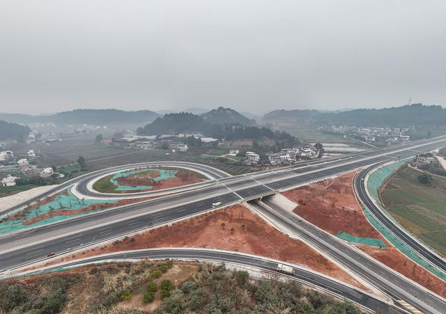 12月30日拍摄的成南高速扩容工程黄桷垭互通(无人机照片)。新华社记者 王曦 摄