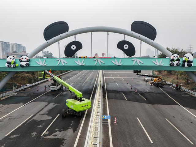 12月30日在成南高速扩容工程成都青白江段拍摄的主题装置(无人机照片)。新华社记者 王曦 摄