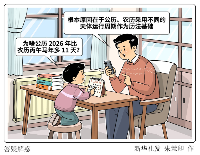 2026年即将到来。翻开日历,公历2026年有365天,比即将到来的农历丙午马年全年354天多11天。而公历2025年有365天,比农历乙巳蛇年384天少19天。为啥公历、农历年的长短时常“倒转”?