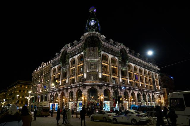 2025年12月31日,俄罗斯圣彼得堡一处建筑点亮了节日灯光。新华社发(郭飞洲摄)