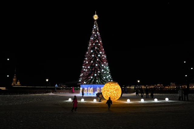 2025年12月31日,俄罗斯圣彼得堡的街心花园点亮节日灯光。新华社发(郭飞洲摄)