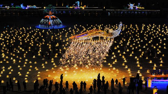 12月31日,游人在呼和浩特大黑河军事文化乐园参加跨年活动。新华社发