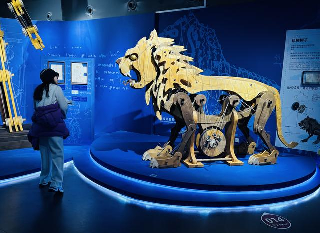 1月1日,观众在展览上参观机械狮子模型。新华社记者 周润健 摄天津自然博物馆副馆长李勇介绍,本次特展共展出各类展品超过140件,包括达·芬奇不同时期创作手稿(复印件)、数字修复与重建手稿(复印件)、数字修复艺术作品、达·芬奇机械发明还原实物,以及天津自然博物馆馆藏的矿石、植物、昆虫、动物等珍稀自然标本。