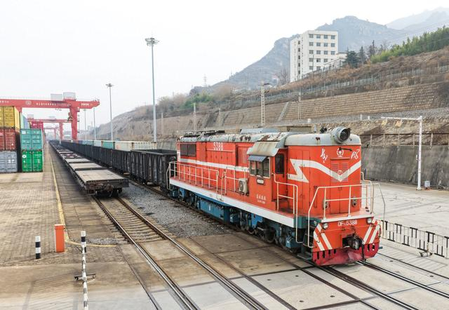 2026年1月1日,一列装有汽车配件的火车从中哈(连云港)物流合作基地发往哈萨克斯坦(无人机照片)。这是中哈(连云港)物流合作基地2026年开行的第一趟中欧班列。新华社发(王健民摄)