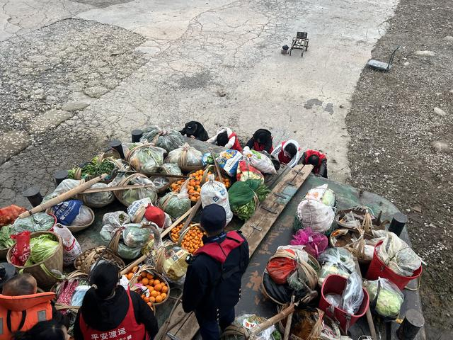 上船的背篓多了起来。村民们说说笑笑,拉着家常。