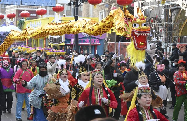 2026年1月1日,舞龙队演员在乌鲁木齐大巴扎步行街表演。新华社发(徐锐 摄)