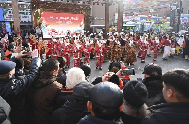 新年第一天,乌鲁木齐市天山区“打起手鼓舞起龙”新年社火闹巴扎活动在大巴扎步行街举办,吸引游客和市民参与其中,热热闹闹迎接新年的到来。