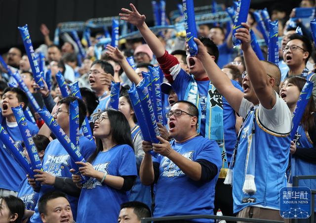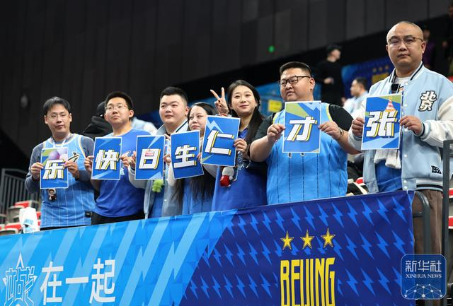 ↑ 北京北汽队的球迷在为北京北汽队加油助威。