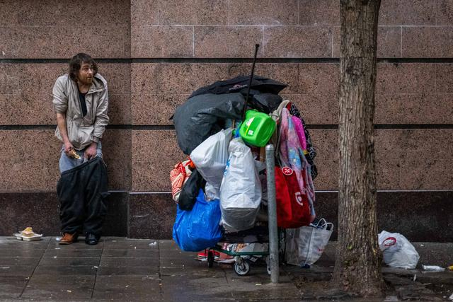 2025年12月31日,在美国加利福尼亚州旧金山,无家可归者站在街头。新华社发(朱子于摄)