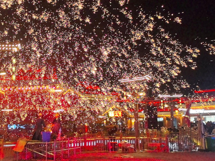 在湖南省怀化市鹤城区榆树湾·青春广场,一场“非遗+祈福”的盛典将节日气氛推向高潮。元旦当天,傩面舞者随着鼓点腾跃,神秘古朴;传承人赤脚踏上36把钢刀搭成的“刀山”,引来阵阵惊叹。夜幕降临,打铁花表演现场,传承人将铁水抛向空中,再用木板奋力击打,千点万点金花四溅,打造出“火树银花不夜天”的绝美景象。