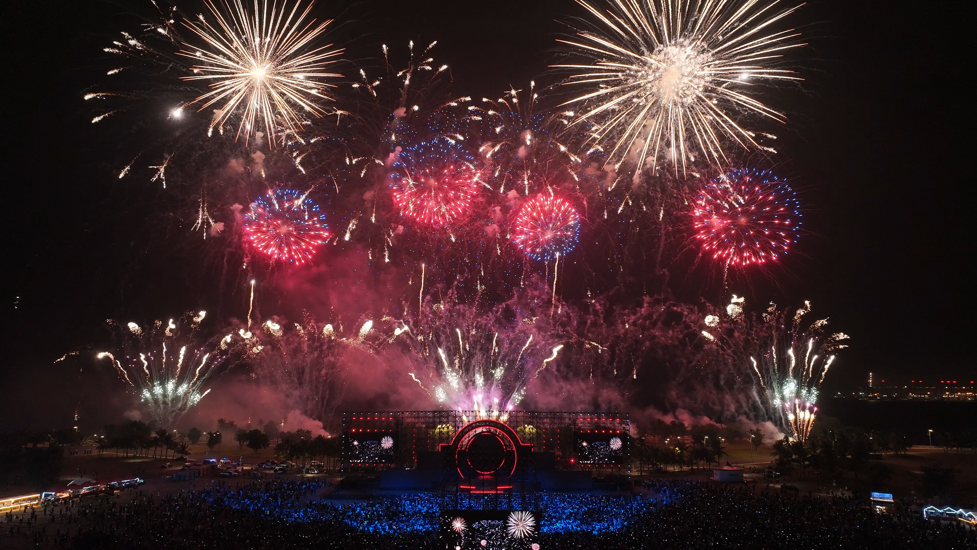 跨年夜,数万游客在海花岛旅游度假区看烟花表演。(受访者供图)暖阳余温持续至深夜。夕阳下的海岛、夜色中的烟花秀,为游客营造出温暖而松弛的跨年氛围。跨年夜及1月1日当天,海花岛旅游度假区累计接待游客近10万人次,拥有5121间客房的欧堡酒店12月31日满房。“白天在沙滩上晒太阳,晚上穿着薄衫看烟花,这样的新年体验很难得。”来自广州的游客陈迪琪表示。