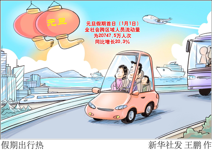 记者1月2日从交通运输部获悉,元旦假期首日(1月1日),全社会跨区域人员流动量为20747.5万人次,同比增长20.3%。