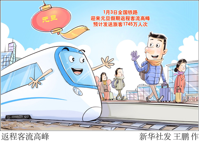 记者1月3日从中国国家铁路集团有限公司获悉,1月2日,全国铁路发送旅客1221.3万人次,运输安全平稳有序。1月3日,全国铁路预计发送旅客1745万人次,计划加开旅客列车1343列。