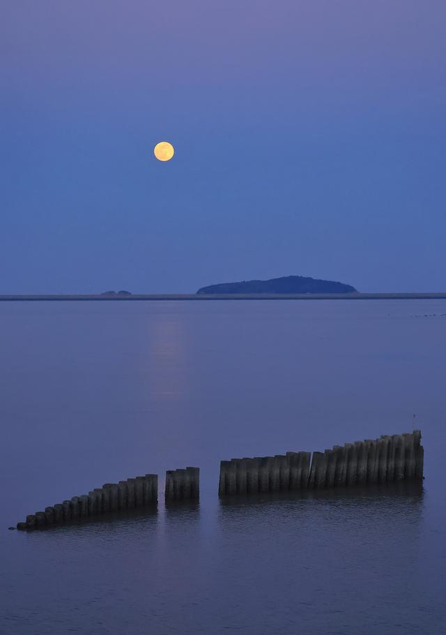 1月3日在浙江省舟山市梁横岛拍摄的月亮。新华社发(邢守秒摄)