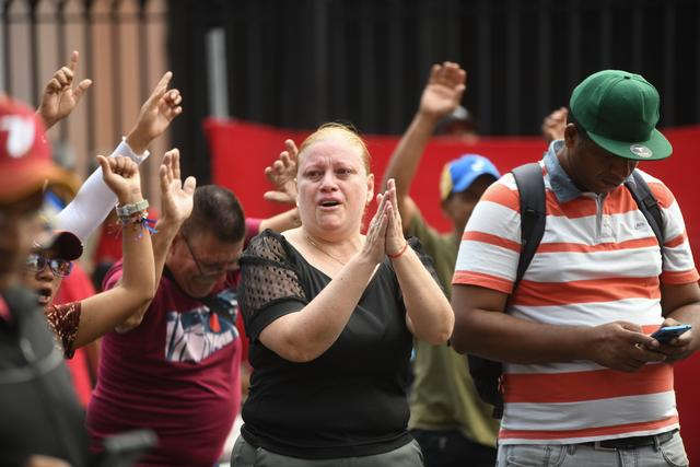 1月3日,在委内瑞拉首都加拉加斯,人们在米拉弗洛雷斯宫附近集会。新华社发(马科斯·萨尔加多摄)