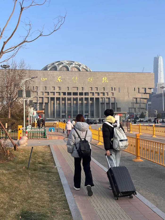 元旦假期,游客拖着行李箱走向山东博物馆。新华社发