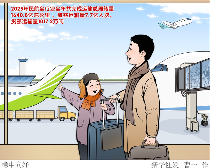 2025年民航全行业全年共完成运输总周转量1640.8亿吨公里、旅客运输量7.7亿人次、货邮运输量1017.2万吨,同比分别增长10.5%、5.5%、13.3%。