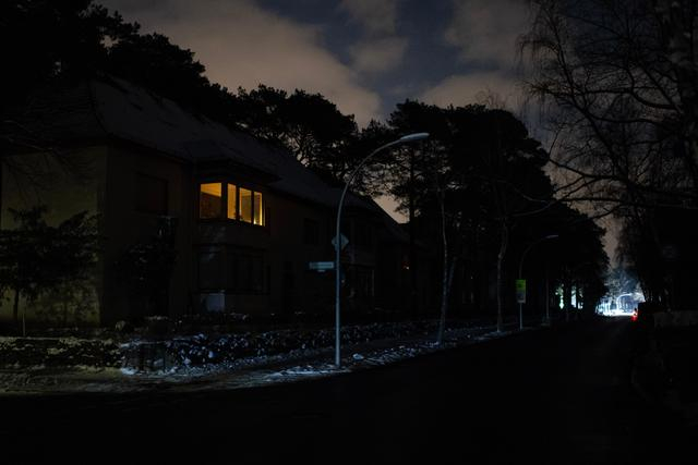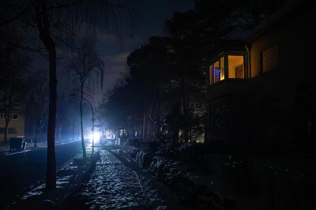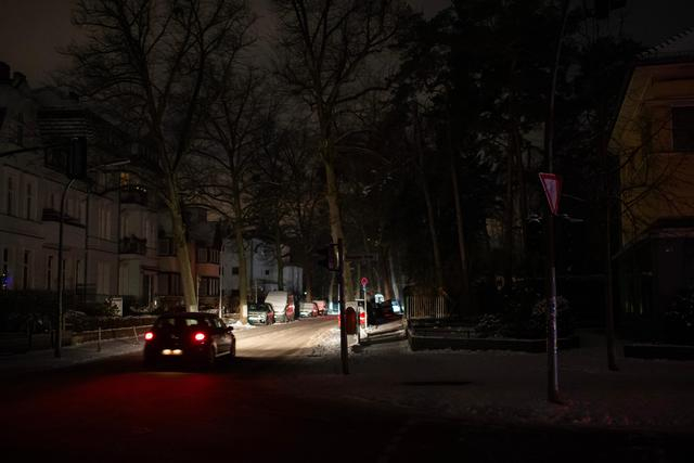 这是1月6日在德国首都柏林西南部拍摄的一条停电的街道。