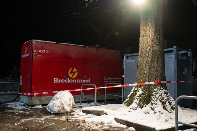 这是1月6日在德国首都柏林西南部停电区域拍摄的工作中的发电设备。