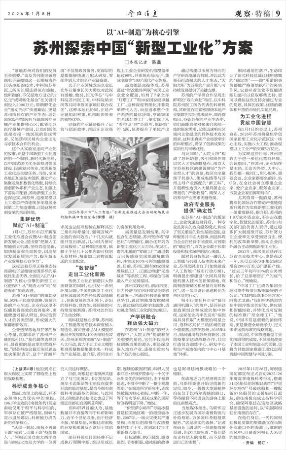【原标题】以“AI+制造”为核心引擎苏州探索中国“新型工业化”方案