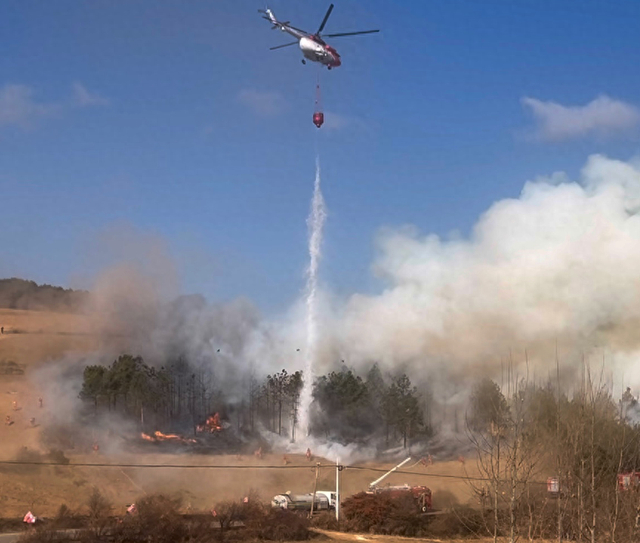 “火场态势研判智能辅助决策系统”智能规划火灾现场直升机飞行航线,并标注投洒灭火点,帮助直升机实施精准洒水灭火作业。新华社发