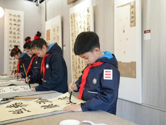 ↑成都市奥林小学学生为边海防官兵创作书法作品