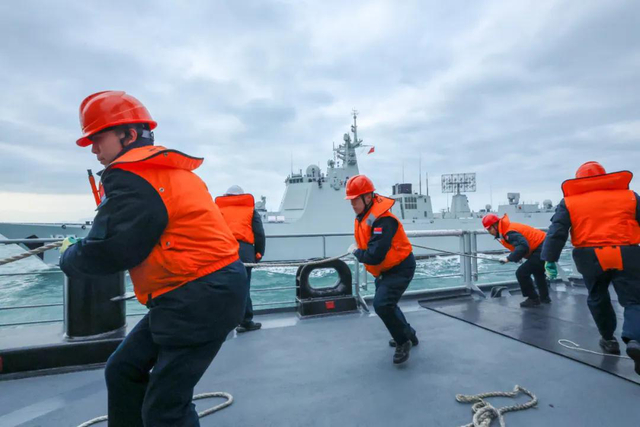 海军东平湖舰辗转多个海区,实施海上横向、纵向补给训练,有效锤炼编队在复杂环境下的持续作战保障能力,检验多舰种协同补给战术战法。