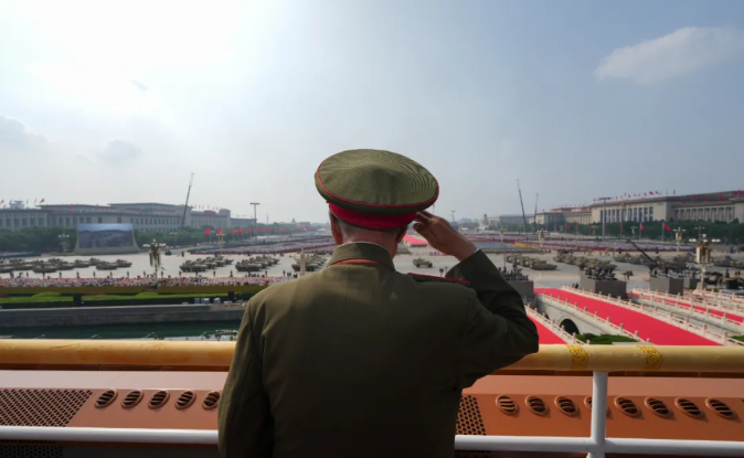 这是观礼嘉宾在天安门城楼上敬礼。新华社记者 才扬 摄一幕幕定格脑海