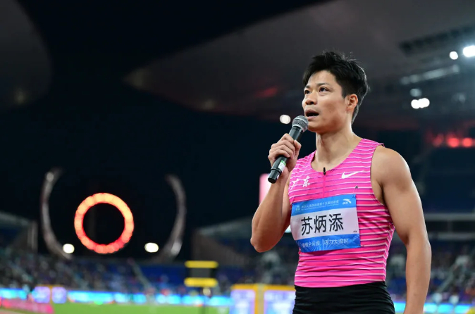 11月20日,广东队选手苏炳添在比赛后发表感言。新华社记者 江汉 摄从一个时代的落幕里