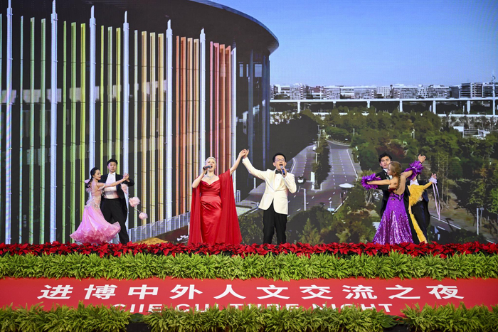 2025年11月6日,演员在“进博中外人文交流之夜”文艺演出上表演。