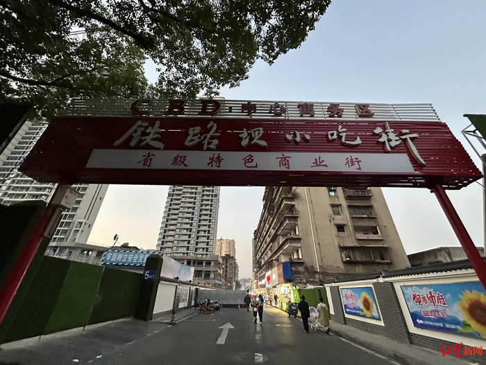 入选“湖北省夜间消费集聚区”名单后,今年下半年,铁路坝小吃街的南部入口被换上了更大的街区牌匾,并标注了“省级特色商业街”的字样。