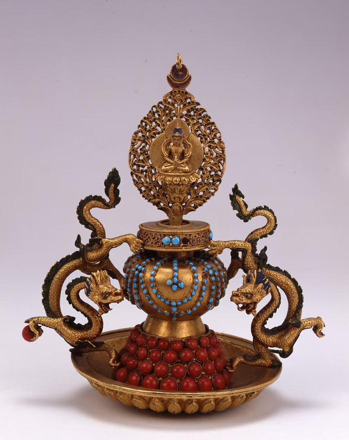 ▲铜鎏金嵌松石珊瑚长寿瓶展览精选布达拉宫珍藏的佛像、唐卡、经卷、法器、服饰等110套186件文物,其中超三分之一为首次公开展出。展品生动勾勒出布达拉宫1300年的历史脉络。展览通过“建筑”“珍宝”“保护利用”三大主题,结合数字专厅与光影技术,全方位展现布达拉宫的建筑智慧与艺术成就。观众可借助沉浸式VR漫游红山之巅,或通过数字化还原壁画感受瑰丽文化,体验科技与历史的深度融合。