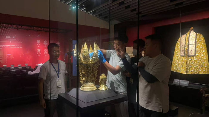 ▲工作人员正在布展红星新闻记者从三星堆博物馆相关负责人处获悉,原综合馆在经过规划和改造后,4月27日起将重新开放,首秀为“布达拉宫——来自高原的世界文化遗产”特展。