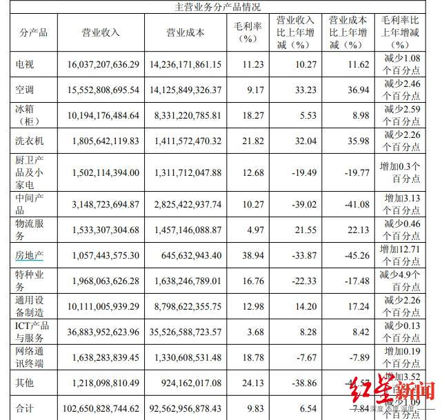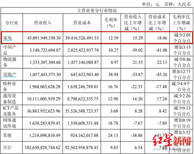 从营收构成来看,以电视、冰箱(柜)、空调、洗衣机等为代表的智能家电业务为公司的第一大收入来源。