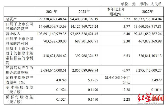 据2024年年报显示,公司营业总收入为1036.91亿元,同比增长约6.40%;实现归母净利润约7.04亿元,同比增长2.3%,公司实现营利双增。